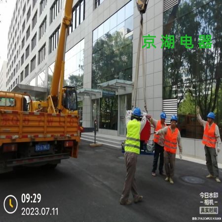 下圖為:中國(guó)鐵工投資建設(shè)集團(tuán)(總部)配電室變壓器送貨現(xiàn)場(chǎng)