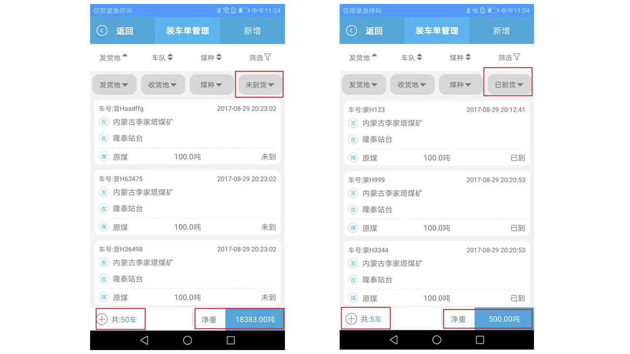 煤炭運(yùn)銷系統(tǒng)APP首頁與裝車單