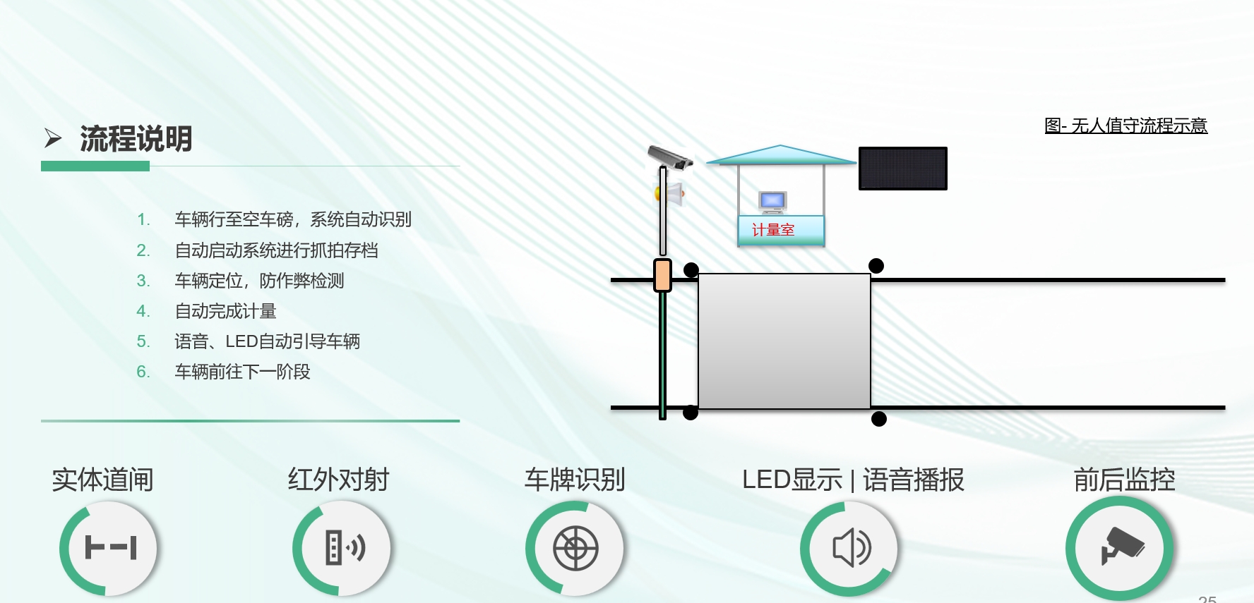 5. 無人計量系統(tǒng):實現(xiàn)磅房稱重無人化,司機掃碼過磅,自動打印磅單。